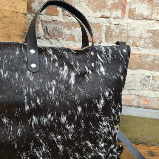 The Backpack provides travelers with the perfect blend of western-style and functionality. Its large, spacious design is ideal for all your belongings, while the cowhide and exclusive Italian leather make it a smart and stylish choice. Simple and sophisticated, it's perfect for any journey. This bag features pockets large enough for your cell phone and more.  The adjustable straps will provide added comfort for any journey.
