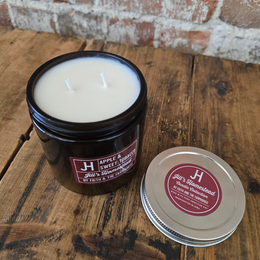 Experience the cozy essence of fall with the JH Candle - Apple & Sweet Tobacco. This phthalate-free, two-wick candle fills your space with a warm, inviting aroma that blends crisp apple and rich sweet tobacco notes. Perfect for creating a comforting ambiance, its dual wicks ensure an even burn and enhanced fragrance throw, adding a touch of seasonal warmth to any room.