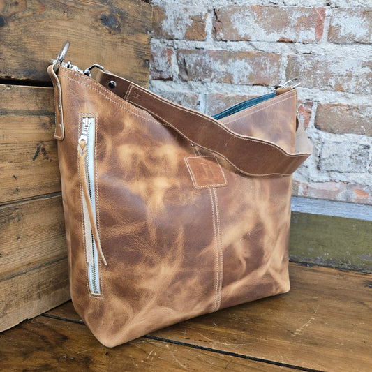 The Outrider is an ideal, everyday handbag made of full grain leather. Its large size and wide base allows you to easily hold all of your essentials while creating a timeless statement. This versatile and durable bag is perfect for any occasion from every day to your wild adventures.