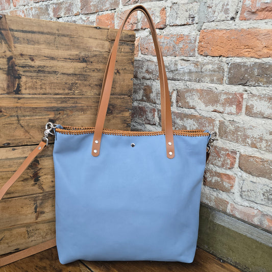 The Tote Bag is the bag that ends all tote bags. It smells as good as it looks! This leather is luxurious and beautiful. The Tote Bag is perfect for an everyday carry bag or as a laptop/work bag.