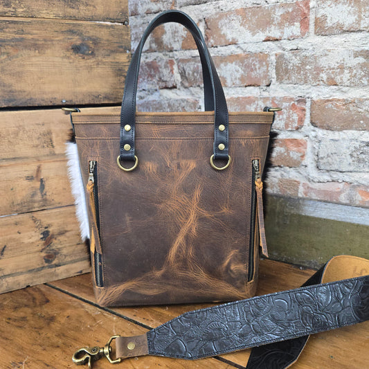 The Midwestern handbag is crafted from luxurious exclusive Italian leather to give you a durable and fashionable accessory for everyday use. With beautiful western detailing, this handbag radiates confidence and offers ample storage with a spacious interior and a concealed carry right or left hand draw pocket.