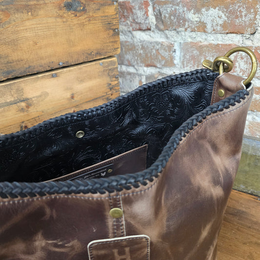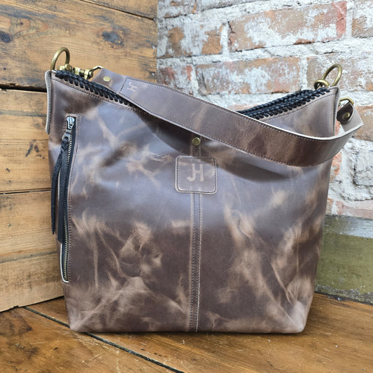 The Outrider is an ideal, everyday handbag made of full grain leather. Its large size and wide base allows you to easily hold all of your essentials while creating a timeless statement. This versatile and durable bag is perfect for any occasion from every day to your wild adventures.