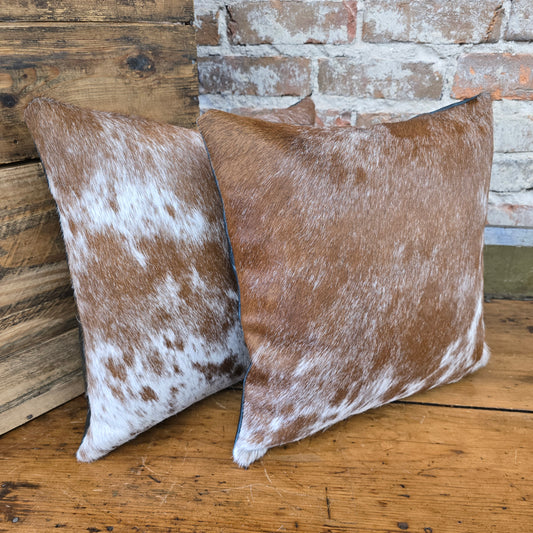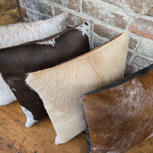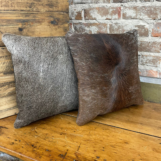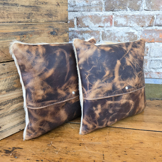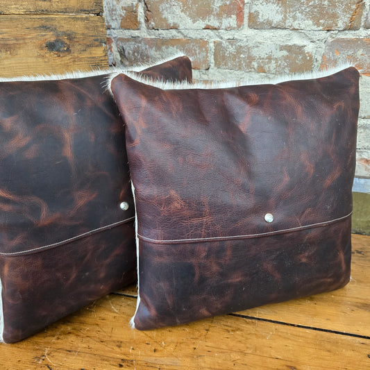 These custom cowhide pillows are the perfect addition to any western-themed decor. Made with premium full grain leather, the set of 2 pillows are both classic and luxurious. Personalize your home, RV, or office with these unique and high-quality pillows.