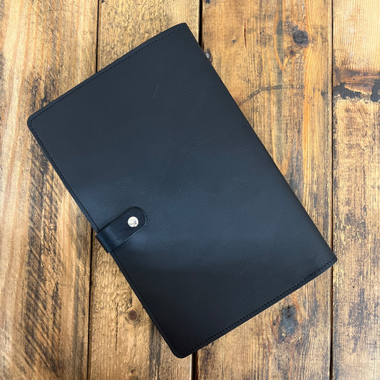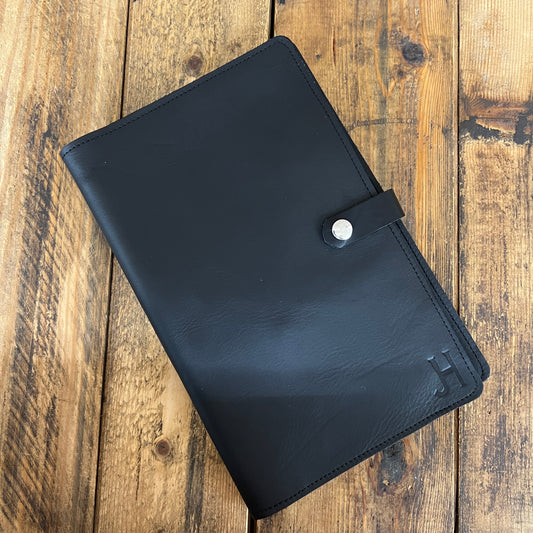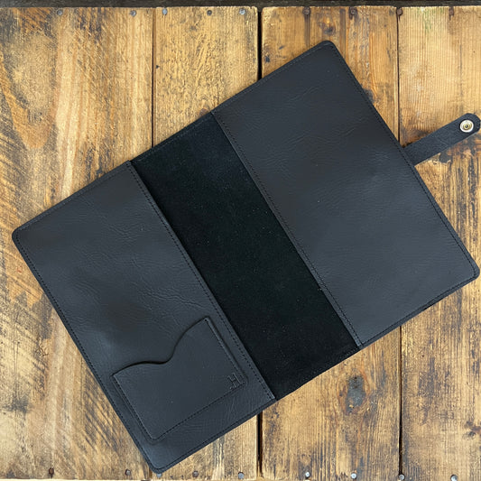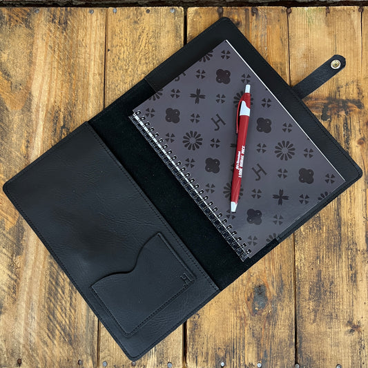 Keep it classy with our full grain leather Black Notebook Cover. These covers are great to keep all of your important things organized during business or daily life.
