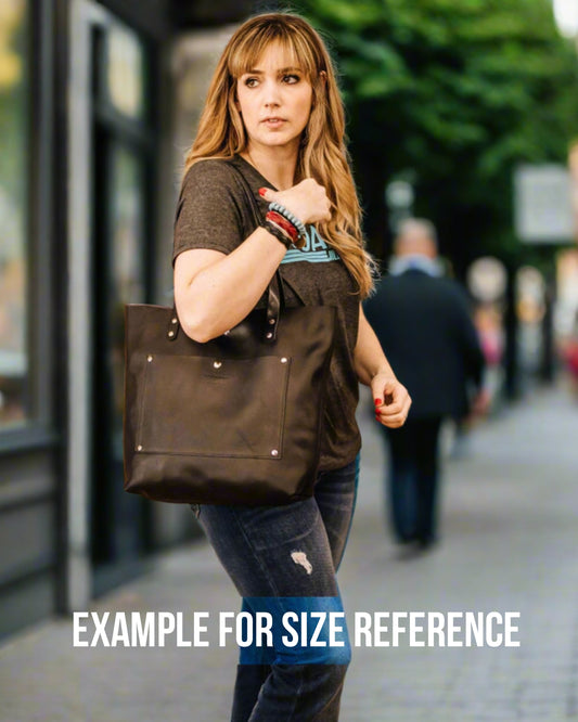 The Tote Bag is the bag that ends all tote bags. It smells as good as it looks! This leather is luxurious, rugged, and just stunning. It is paired with soft straps made from premium leather. The Tote Bag is perfect for an everyday carry bag or as a laptop/work bag.