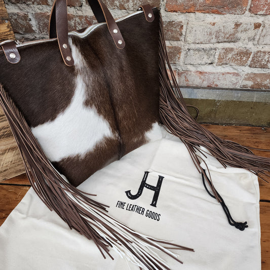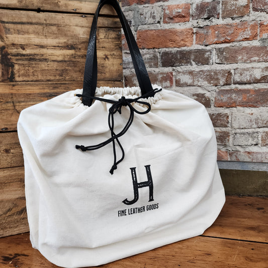 This Dust Cover is the perfect solution to keeping your JH leather goods clean and dust-free. Crafted from breathable canvas with a black cord pull and featuring a JH printed logo, the dust cover is designed to protect your belongings with care and style without bending or folding your fringe.