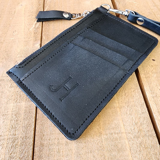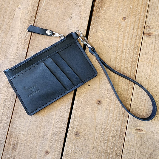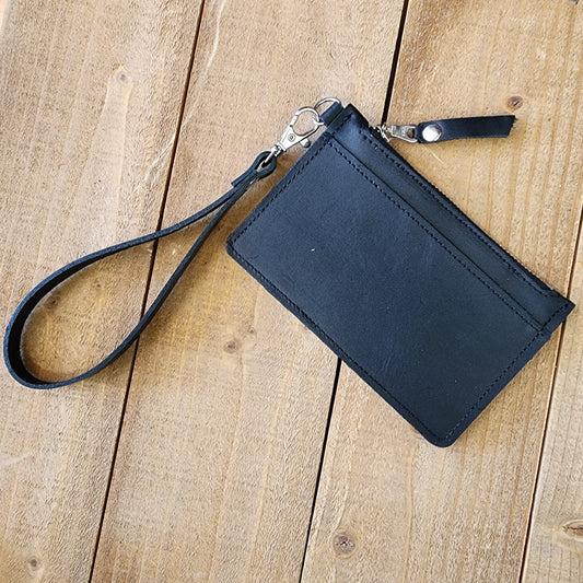 The Modesto Clutch is an elegant, slim wallet made with full grain leather. It features card slots and a secure zipper pocket for cash, ideal for a night out. The included wristlet strap brings extra portability, while the full grain leather gives it a timeless look.