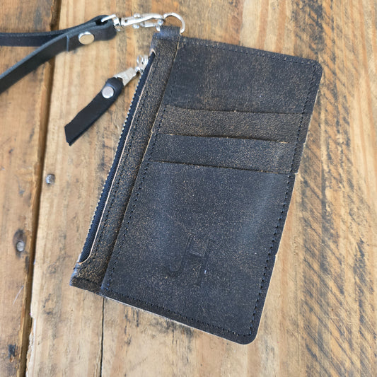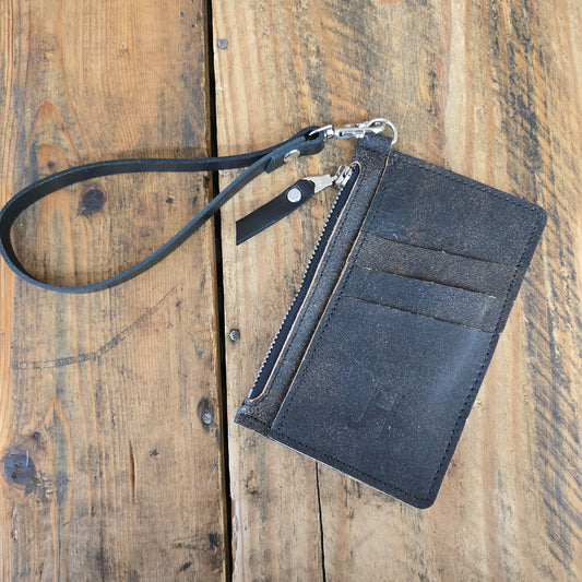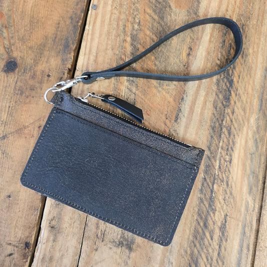 The Modesto Clutch is an elegant, slim wallet made with full grain leather. It features card slots and a secure zipper pocket for cash, ideal for a night out. The included wristlet strap brings extra portability, while the full grain leather gives it a timeless look.