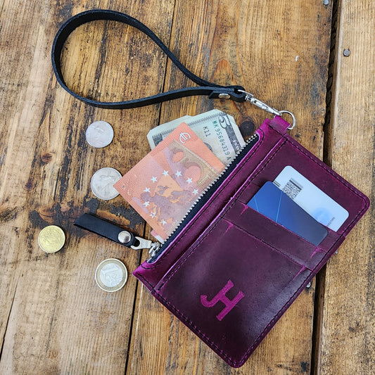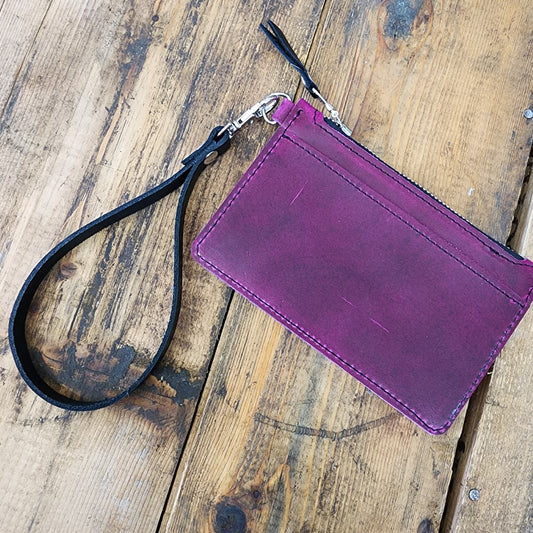 The Modesto Clutch is an elegant, slim wallet made with full grain leather. It features card slots and a secure zipper pocket for cash, ideal for a night out. The included wristlet strap brings extra portability, while the full grain leather gives it a timeless look.