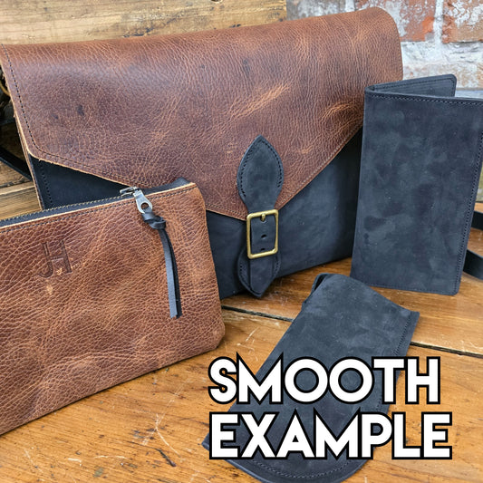 Due to the resolution of your mobile and computer screens, actual color may vary. Our leather is premium full grain and may have occasional range markings.