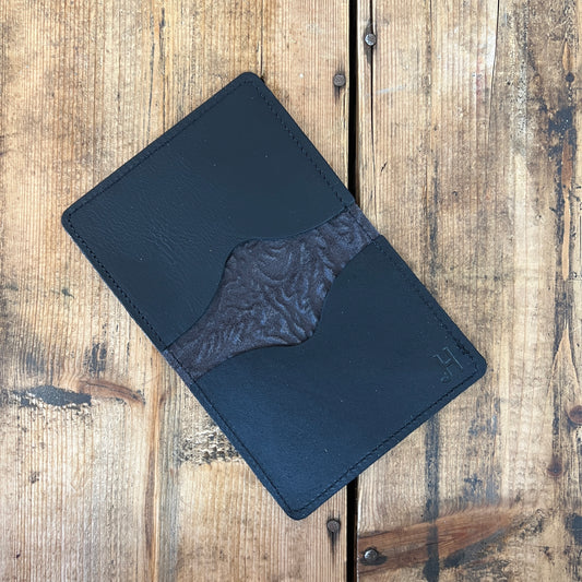 These Bi-Fold Card Holders are hand cut and sewn using full grain leather and cowhides.