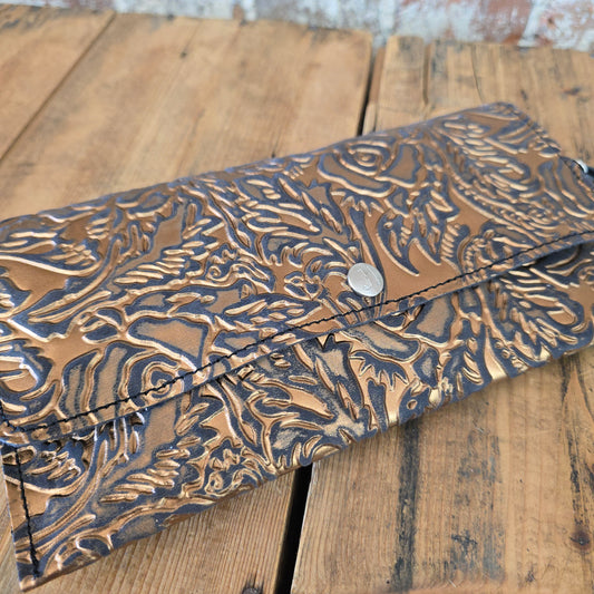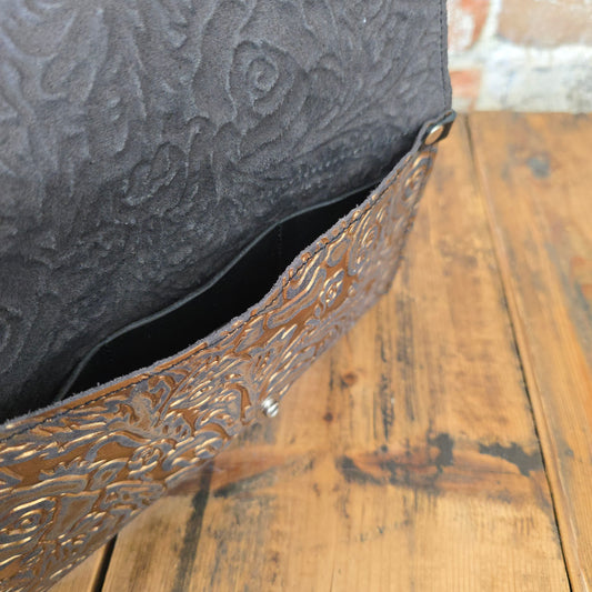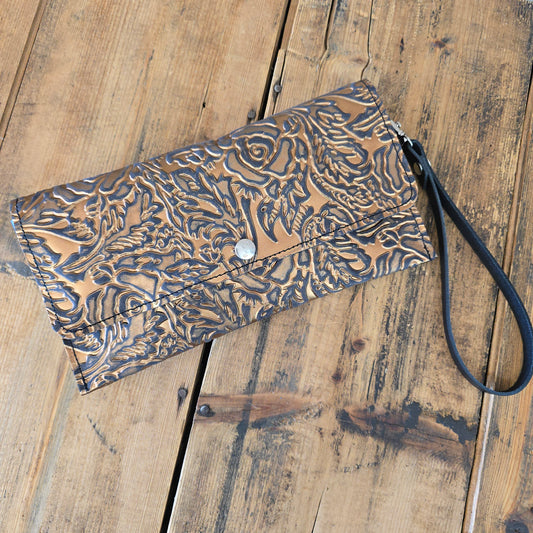 Carly Clutch - Gunmetal + Copper Roses
