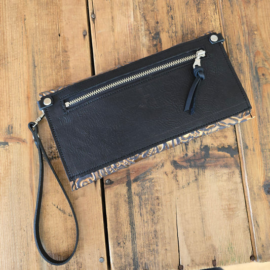 The Carly Clutch can be worn 5 ways - as a crossbody bag, a fanny pack, bum-bag,  wallet or as a wristlet clutch. This small purse has a built-in wallet, with 3 card slots. The zippered pocket on the back will keep your small goods secure!