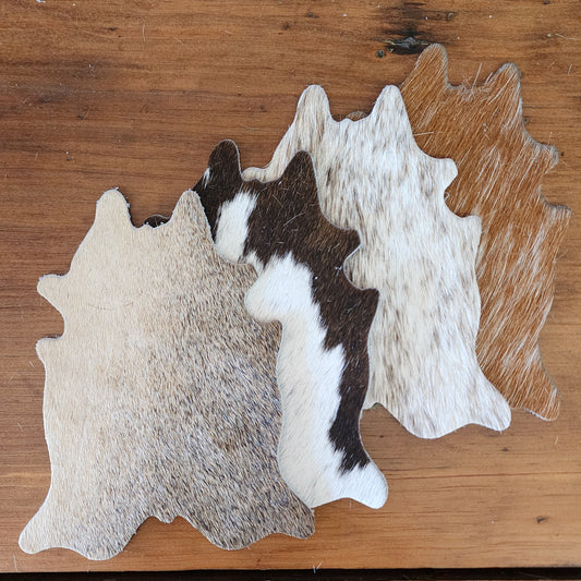 These adorable Cowhide Coasters add a country/western touch to your household. Perfect for under a drink, candle or small plant!